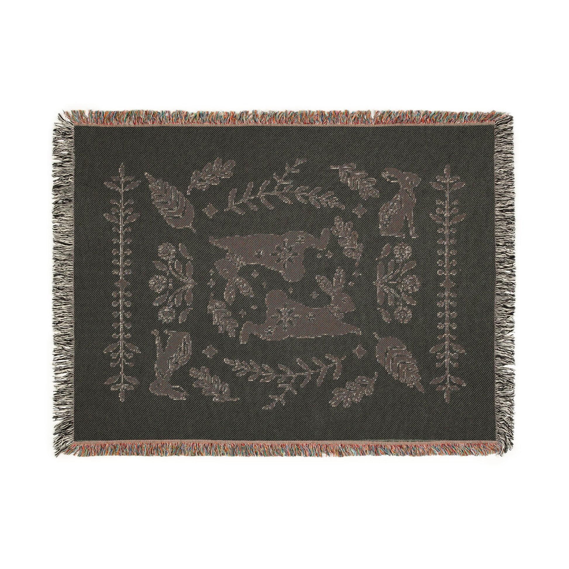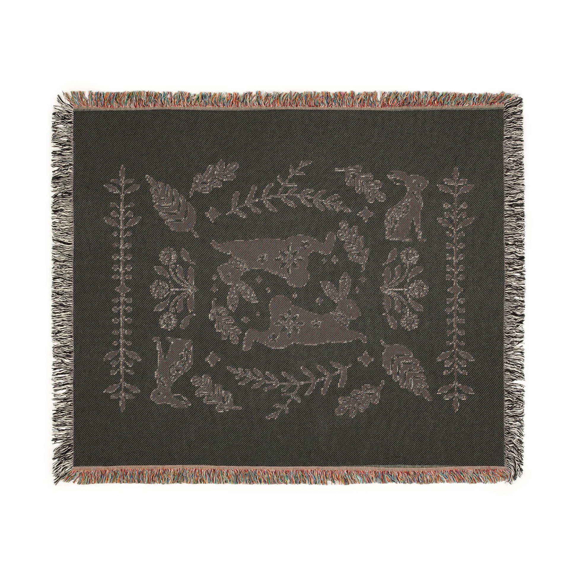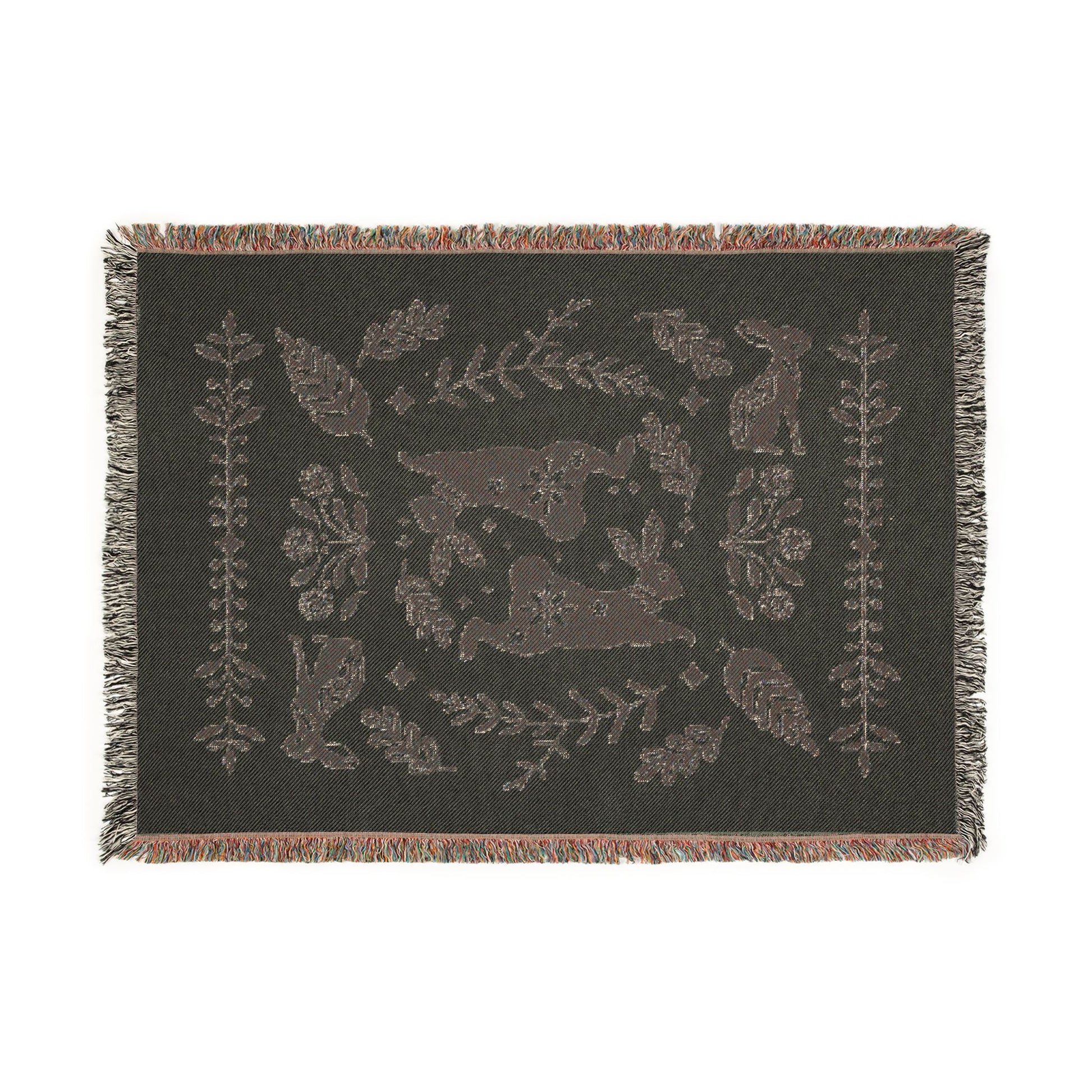 Rabbit Folk Art Woven Cotton Blanket